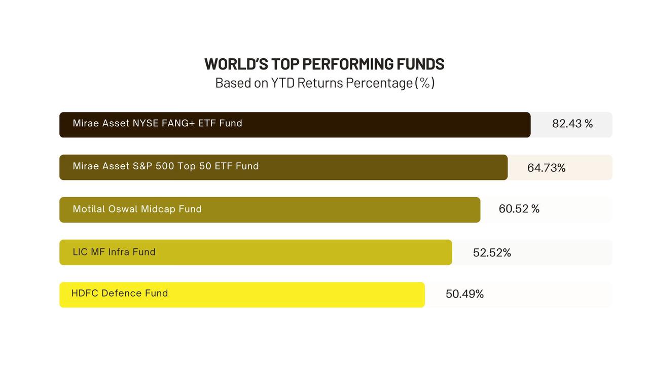 According to data compiled by Interactive Investors, the following are the top-performing investment funds globally, ranked from highest to lowest based on their YTD performance:[3]